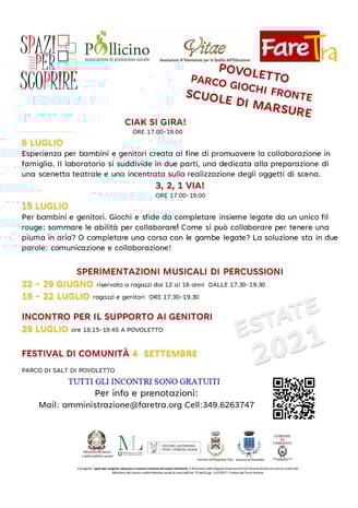 mette in rete 4 associazioni in un connubio di attività che si rivolgono principalmente ai bambini e alle loro famiglie e prevedono l’attivazione di percorsi laboratoriali intesi a 360 gradi al fine di fornire occasioni di formazione e crescita personale anche da un punto di vista delle
